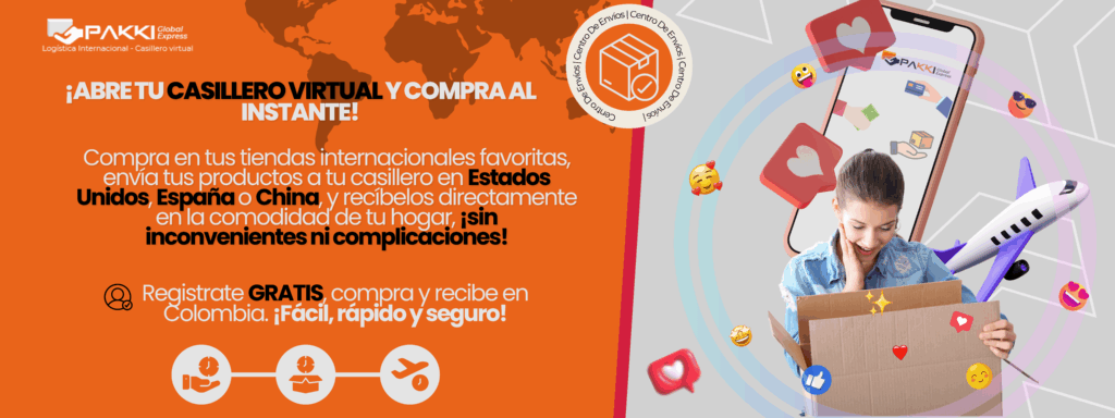 Activa tu casillero virtual y recibe tus compras en Colombia fácil, rápido y seguro. Sin sorpresas en tarifas. Consolidación de paquetes. Envíos seguros desde Estados Unidos a toda Colombia